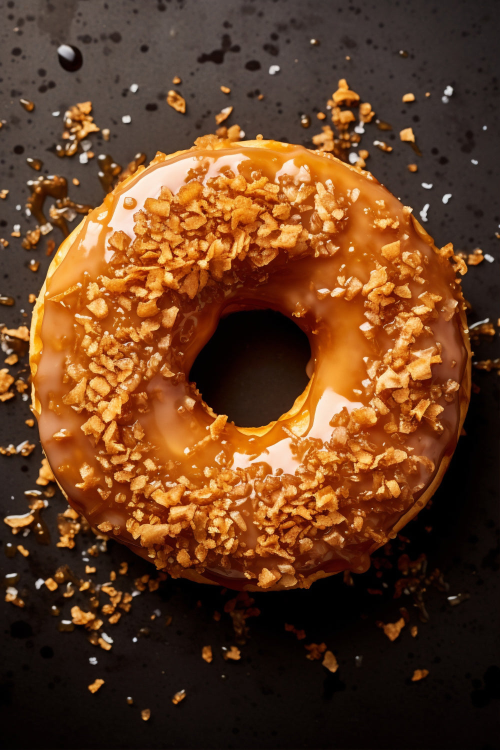 Weiche, helle Karamellglasur, die alles verbindet – süß, buttery, rund, eher wie eine dünne Karamellschicht als schweres Toffee.